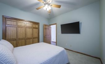 This guest home was custom built in 2006 by the founder and developer of Diamond Bluff. A gated private paved driveway takes you far away from other homes, but close to all of the amenities! Not to mention, the view is so breathtaking that the founder of Diamond Bluff chose THIS LOT to make his home and guest home! From the inside of the house to the outdoor deck, the views are stunning, to say the least! This 1050 sq ft guest home includes 2 bedrooms and one full bath, full kitchen, living room with sleeper sofa, wrap around deck, and a breathtaking view! Sleeps 6.