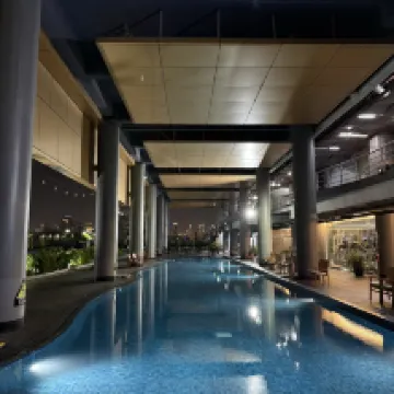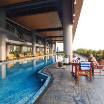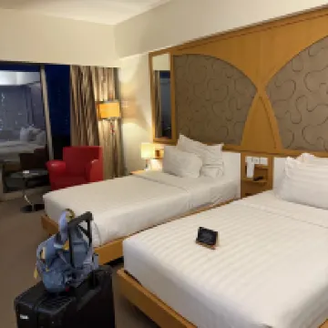 Из-за задержки рейса мы ожидали прибыть в отель в два часа. Перед фотосессией некому было заселиться, поэтому мы связались с отелем через службу поддержки клиентов Ctrip. Когда мы приехали в отель, он был на стойке регистрации. Сотрудники стойки регистрации нас ждали, и заселение прошло гладко. Процедуры 👍Отель не был недавно отремонтирован, но номера большие, а пейзаж за окном хороший, что заставляет людей чувствовать себя хорошо. Зал для завтрака большой и разнообразный, его можно менять каждый день. Бассейн отеля выглядит хорошо, но жаль, что я каждый день возвращаюсь в отель очень поздно и не успеваю поплавать. У бассейна есть терраса, где можно сфотографировать ночной вид или посидеть. и наслаждайтесь ветерком. Отель находится не слишком близко к площади Независимости, все равно идти минут 20. Близлежащие магазины и места, где можно поесть, относительно неудобны. Мы все поели и купили хорошие вещи, прежде чем вернуться в отель. Поездка на такси от отеля до аэропорта заняла около 30 минут, и мы остались довольны.
