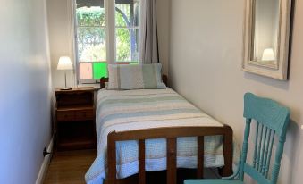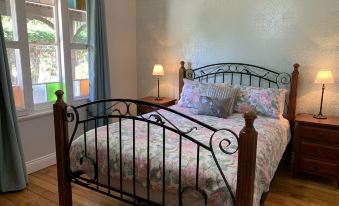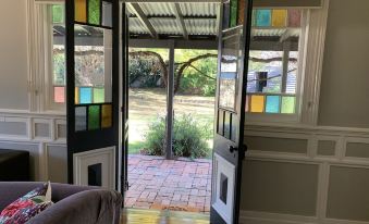 However you choose to spend your time, Florence Cottage will be your home away from home. Cook up a spot of breakfast in the cozy kitchen, stocked with cutlery, crockery and appliances. Curl up in the living room to read a book, dappled with colourful light from the stained glass windows. Let the kids run free in the large backyard or take a short walk to the nearby swimming pool. There is ample space in the dining room to share dinner with family or friends at the end of a fun day out, or a quiet day in. Take your choice of a relaxing bath or shower with towels, shampoo, conditioner and body wash supplied.