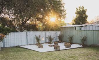 The cottage is freshly painted and you have access to the entire house and yard. The garden has multiple fruit trees to pick your own oranges, mandarins, lemons and mangos (seasonal of course). The garden also has a wonderful designated fire pit to enjoy on those winter nights. Or hang out on our retro refurbished cane outdoor setting whilst enjoying the sunset and a glass of wine on the huge undercover outdoor deck.