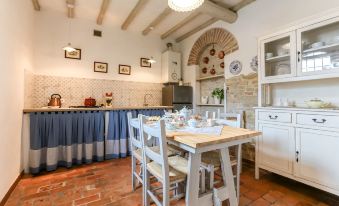 Renovated country house with private garden with gazebo and table for outdoor dining, swimming pool and shared parking with 4 other apartments. Within the property, common green spaces that span views of the enchanting Tuscan countryside.