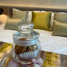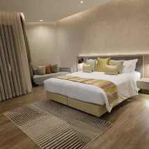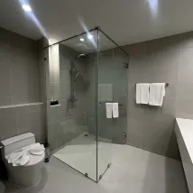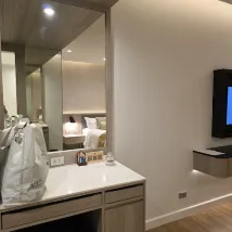 Новый отель, но не очень впечатлила система регистрации заезда и отъезда. Это было медленно, и сотрудники выглядели растерянными. Возможно, потому что было много гостей. Домработница не смогла вовремя убрать. Гости приходят и ждут регистрации. По прибытии гостям предлагается чай с лимоном. Вкусный, не слишком сладкий.