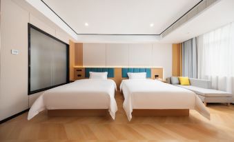 房間比較大,剛裝修好,但沒什麼味道,床體驗感很舒服,衞生乾淨整潔,價格也比較合理,淋雨和洗漱台分開,窗簾是自動開關了