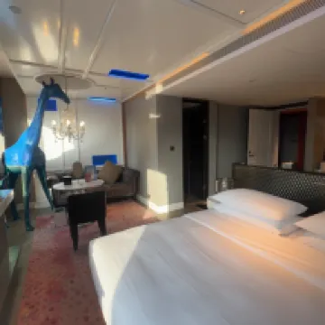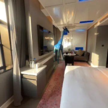 Отель отличается ярким тематическим дизайном, очень удобен для семейного отдыха с детьми, предоставляются мягкие халаты и специальные мультяшные полотенца в конце кровати. Рядом с отелем много магазинов, большой выбор мест для еды и шопинга, а обслуживание в отеле очень внимательное. Особо хочу отметить сотрудницу под номером «Юйпао» (Халат) — я приехал поздно, почти в полночь, и у меня были вопросы, на которые она терпеливо ответила.