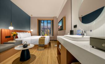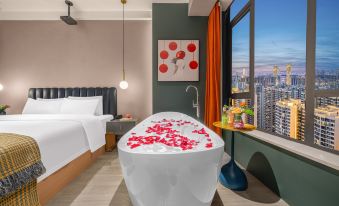 Miyang Light Luxury Double Bed Room With 180° City View, Mobile Screen Projection, And Healing Bay Window