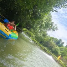 Quite a rustic setting with a good ambience. Close to the lake with boat rides, canoes, rafting and mini theme park. Camp site with bbq, table tennis and pool table. Breakfast at hotel quite diverse. Very pet friendly.