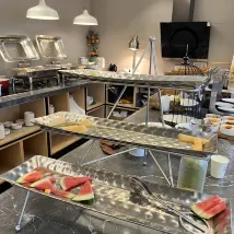 這些年每次出差過來都會住在這裏,重新裝修後衞生、設施、住宿環境,在商務酒店裡還算不錯的。 衹是早餐真的很無語,10點閉餐,9點多一點去的,已經沒什麼了,要求再添加一些被告知有什麼吃什麼吧……9:20左右就已經開始收拾了,最後實在沒什麼可吃的,要求添點哈密瓜吧,被告知沒有,熱牛奶的機器也早早被關掉了,總之品種本來就不多,最後衹能是剩什麼吃什麼。