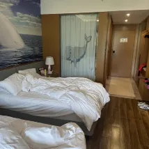 Я заселился 2 мая. Вестибюль отеля очень большой. Окон регистрации более 20, но у каждого окна очередь более 10 человек. В праздничные дни очередь нормальная, но через 20 минут очередь. перестал двигаться.Он не двигался.Я спросила почему.Оказалось, что кроме комнаты с двуспальной кроватью, остальные комнаты не успели убраться и освободиться, особенно родительско-детские комнаты. . Это было ужасно. К счастью, я забронировал номер с двуспальной кроватью и заселился без проблем... Комната выходила на мир льда и снега, гигиена в номере не так плоха, как ожидалось, уборка очень чистая, за исключением балкона. дверь была закрыта долгое время, в номере присутствует запах, который выветривается после некоторого открытия двери, придраться больше не к чему, отель расположен недалеко от нескольких туристических достопримечательностей. Это очень удобно. бесплатный автобус по праздникам, что очень удобно. Завтрак в отеле вполне удовлетворительный, а разнообразие не такое большое, как в пятизвездочном отеле. Ведь цена всего 128, поэтому ожиданий быть не должно. слишком высоко... Завтрак должен прибыть в 8:30. Если вы приедете около 9 часов, мест почти не будет и придется ждать... Шведский стол в отеле нормальный, но ресторанов поблизости мало. .. Официанты отзывчивы на просьбы и хорошее отношение... За отелем тоже есть мелкие животные, и продают корм (Листья и морковь) 20 юаней/порция, цена немного дешевле, чем в. Основная цель - дать детям удовольствие от кормления. Мы купили его за 100 юаней за раз. Официант был шокирован и дал нам дополнительный корм.