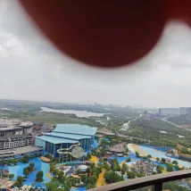 В выходные и праздничные дни здесь было очень многолюдно, и эффективность работы стойки регистрации была немного впечатляющей. После 20-минутного ожидания в очереди почти не было движения. Пакет «Отель плюс», который я забронировал на этот раз, был напрямую привязан к моему удостоверению личности. На этот раз я остановился в номере с видом на гору. С балкона на первом этаже можно увидеть жирафов, страусов и т. д. Есть также номер с видом на водный мир. Лично я считаю, что угол обзора должен быть лучше. Говорят, что фейерверк можно увидеть и издалека. Увы, в этот раз я не успел, немного жаль. Звукоизоляция комнаты действительно не очень хорошая. Среди ночи в коридоре постоянно кричат и бегают. Они, наверное, возвращаются после просмотра фейерверка. В туалете тоже пахнет канализацией. Хотел проветрить, чтобы рассеять запах, но, к сожалению, в моей комнате нет туалета. Вытяжка в целом хорошая.