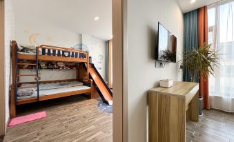距離茅山森林世界2公里,算是很有性價比的民宿了!近四百的親子房間,三個孩子在上下鋪的滑梯玩的很開心,房間也很寬敞乾淨!床墊和枕頭都是乳膠的,睡的很好!
