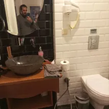У этого отеля отличное расположение, очень хороший номер и огромная кровать. Цена не дешевая и не супердорогая, а скорее где-то посередине. Мне не понравилось, что стойка регистрации физически находится далеко от самого отеля, а не внизу, как в большинстве отелей. Стойка регистрации отеля — это группа, которая представляет несколько отелей в этом районе, поэтому связаться с ними, чтобы выразить какую-либо обеспокоенность, может быть немного неприятно. Ванная комната очень чистая, новая, а номер тоже большой. Интернет-соединение также отличное.