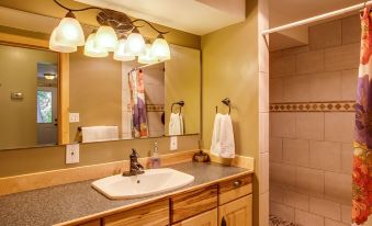 Creekside Lodge is designed with comfort and convenience in mind. Featuring 4 cozy bedrooms (1 King and 3 Queens), 4.5 bathrooms, and 2 fully stocked kitchens, there’s plenty of space for families or groups. Enjoy relaxing or entertaining in 2 spacious living rooms, each with flat-screen TVs.
