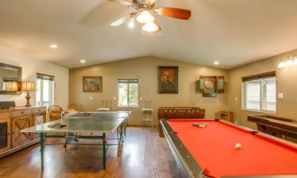 As a game-friendly resort, you’ll have access to horseshoes, lawn games, and plenty of space for outdoor fun like tossing a football. Indoors, enjoy a wide selection of entertainment options, including a pool table, ping pong, shuffleboard, a chess table, and classic board games for all ages.