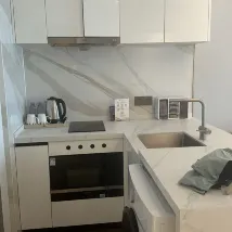This place was filthy. I can’t believe they’re renting out rooms in this condition. The curtains had a huge yellow-brown stain like something leaked on them ages ago and was never cleaned. Every surface was covered in thick dust, especially inside the shelves and behind the TV — clearly hasn’t been cleaned in months. The microwave was greasy and stained, and the surrounding cabinets were so dirty my cleaning cloth turned black after one wipe. The windows were covered in grime and you could even see someone had written messages on the glass — meaning it was never actually cleaned. There’s also damage on the furniture, and the whole place just feels neglected and unhygienic. The hotel should be ashamed to let guests stay in rooms like this. Definitely not worth it — avoid unless you’re okay living in dirt.