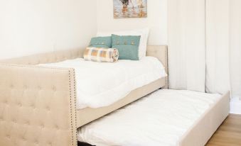 The additional two bedrooms share a convenient Jack-and-Jill bathroom with a tub-shower combo. The middle bedroom offers a charming Twin daybed with a pull-out Twin trundle, while the front bedroom boasts a cozy Queen bed and an optional folding cot in the closet, perfect for sleepovers or little ones who want to stay close to Mom and Dad.About pets:No pets allowed.About children:Children allowed: ages 0-17.I have a playpen and highchair at request.About smoking:Smoking is not permitted.About events:No events allowed.