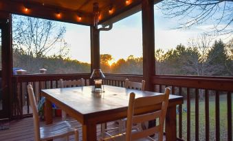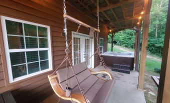 This cozy cabin is a great getaway in a quiet neighborhood. It provides ample space for everyone in the family. There is a Brand New Hot Tub, 2 fireplaces, a firepit, screened deck and much more. The large dining table is great for the family meals or playing games all night. Downstairs features an additional living room, wet bar, and game table with lots of board games provided in the cabin. This will surely be time well spent with your family. Satellite TV and Wi-Fi are available in the cabin as well. About pets:Pets allowed: dogs less than 50 lbs per pet (limit one pet total).About checkOut:Check out before 11:00 AM.About children:Children allowed: ages 0-17.About checkIn:Check in after 4:00 PM.About smoking:Smoking allowed: in designated areas.About minBookingAge:Minimum age to rent: 25.About events:No events allowed.