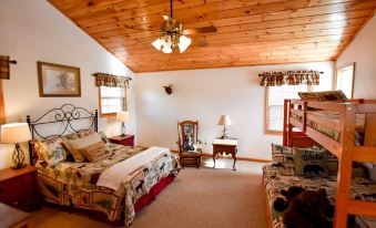 The location is secluded but not too far from stores & restaurants. The 3 levels provide privacy but is also cozy. Owners have provided lots of games & toys & the kitchen was equipped with everything we needed. The bear themed decor is very appropriate for the setting. The hot tub was much appreciated. I would recommend this place & hope to return in the future.