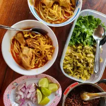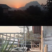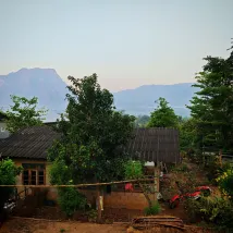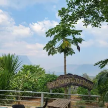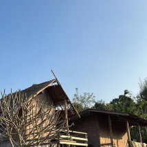 Rustic and tranquil homestay in bamboo bungalows with a beautiful view of the mountains. Lots of cute animal companions too. P'Mui the owner is very friendly and kind. Breakfast is at her relative's small restaurant and they have vegetarian options too. A nice chill place to stay for those who like a quiet and relaxing atmosphere.
