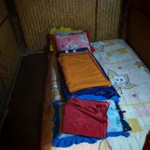 The homestay isn’t luxurious; it’s a simple stay with bamboo huts with a mattress inside, but honestly, that’s all you need.