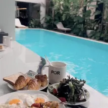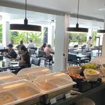 В отеле сервируется бесплатный завтрак «шведский стол». Стиль завтрака каждый день меняется, вкус и качество завтрака очень хорошие. Рядом с вестибюлем отеля есть общественная зона, где гости могут пользоваться питьевой водой. для самообслуживания. Также есть неограниченный запас напитков из кофемашины. У нас они есть каждое утро. Каждый готов встать пораньше и позавтракать внизу. Вы можете позавтракать у бассейна отеля и не спеша насладиться им. , чувствуя хорошую погоду, глядя на красивый пейзаж и наслаждаясь сытным и разнообразным завтраком.