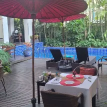 Самое красивое сооружение, которое я видел в Чиангмае. Очень чистый, обильный, свежий и хороший завтрак, очень дружелюбный и улыбчивый персонал. Бассейн очень чистый, пригодится в жаркие и душные дни. Очень рекомендую парам, которым необходимо изолироваться от городского хаоса в романтическом месте, в окружении зелени, с вниманием к мельчайшим деталям. Стоимость за ночь составляет примерно 73 евро за пару.