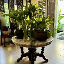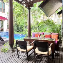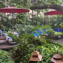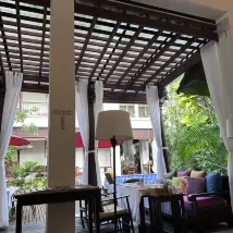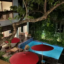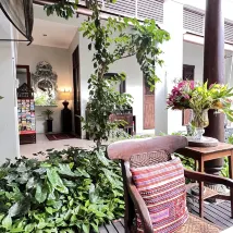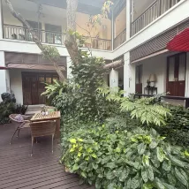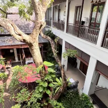 Это наше второе пребывание в этом отеле. В прошлый раз он нас так впечатлил, что мы забронировали номер снова. Номера расположены вокруг центральной площади с видом на бассейн. Все место со вкусом оформлено антикварной мебелью и интересными безделушками. В номерах есть кровати с балдахином, турецкие ковры и повсюду свежие цветы. Просто красиво. Это отель для некурящих, поэтому нам пришлось идти на парковку, чтобы покурить, но в итоге нам предоставили стулья, чтобы посидеть, пока мы это делаем. Спасибо за это. Прямо через дорогу находится храм, а там есть салон тайского массажа, где делают лучший массаж, который я когда-либо пробовал, и, должно быть, он хорошо известен, так как там всегда много народу. В отеле подают самые обильные завтраки, которые вы когда-либо видели, и мы так и не смогли доесть то, что нам подали. Чай был в фарфоровой чашке и чайнике. Все было сервировано так красиво. Вы не сможете поесть здесь в другое время, но вы в пешей доступности от уличных рынков еды и множества ресторанов в этом районе. Холодного пива или напитков тоже нет, так что наполняйте свой холодильник. Персонал был чрезвычайно услужлив, и никаких проблем не было. Это такое романтическое место и такое тихое, если не считать лягушек, которых мы любили. Пышные сады и ничего не выходящего из дома. Каждый раз 5/5 для этого места. Парковка снаружи для тех, кто на собственном транспорте.