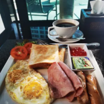 На завтрак выбор невелик: есть западно-тайская кухня, вкус неплохой, кофе-латте-арт каждый день одинаковый.