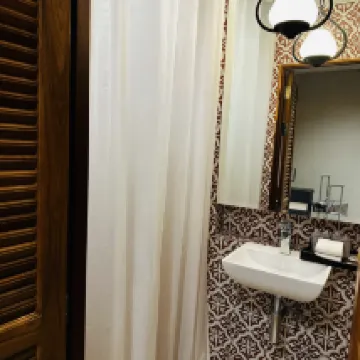Места в номере много, хотя он и несколько старомодный. Протирая ванну спиртовыми бумажными полотенцами, можно быть уверенным, что она будет чёрной. Слив в ванной даже выходит наружу, поэтому, когда вода спустится, пол будет залит водой.