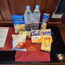 По прибытии мне подарили красивый пакетик со вкусностями, хотя большую часть еды я мог есть... (не кошерно). А в день моего продления еще на два дня обслуживающий персонал подарил мне прекрасную тарелку фруктов... действительно приятная черта.