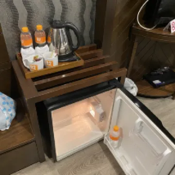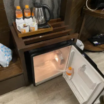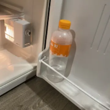 В номере не было чистоты, а в холодильнике стояла наполовину полная бутылка питьевой воды.