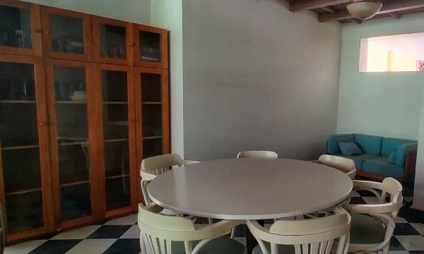 The living room features a comfortable sofa that lets you relax while binging on your favorite shows on a large smart TV, thanks to high-speed Internet. In case of a power outage, there is an inverter. The apartment complements the power backup provided by the society. This way, you are remotely connected at all times.