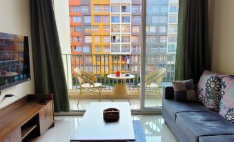 This minimalist, fully furnished 2-bedroom apartment is on the 6th floor of the upscale gated complex - Tata Rio de Goa.