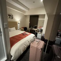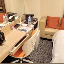 Удобное размещение, недалеко от аэропорта, недалеко от автобусной остановки. Утром предоставляется бесплатный трансфер в аэропорт. В номере ароматно и чисто по японским меркам. В номере есть бутилированная вода. Прошло много времени с тех пор, как мы встречались. Плюс кофеварка в номере. Услуга хранения багажа доступна до и после регистрации заезда. В распоряжении гостей стиральная машина с оплатой монетами, микроволновая печь, бесплатный кофе в вестибюле, бесплатный лед 24 часа в сутки и общественная баня.