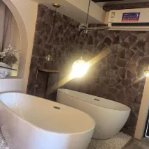 Дизайн номера безупречен, один из лучших среди гостевых домов. Он чистый и опрятный, ванна явно продезинфицирована, даже пахнет пастеризацией. Управляющий также заботливо предоставил пакеты для ванны. Изначально мы не планировали принимать ванну, но раз уж управляющий дал, не стоит отказываться от его доброты [偷笑]. Арбуз и напитки, купленные днем, приятно было употреблять, наслаждаясь видом из ванны.