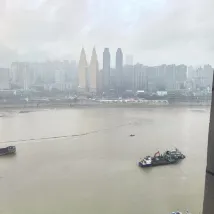 Отель находится прямо у Цзефанбэй, в жилом комплексе. Место приятное, а рядом с апартаментами — полицейский участок, что создает ощущение безопасности. Управляющий заранее связался и прислал координаты. Ключи забрали в минимаркете. Комната — однокомнатная квартира с гостиной, и вид действительно потрясающий: спереди — на реку, сзади — на старинное здание и небоскребы. Честно говоря, пейзажи Чунцина действительно великолепны.