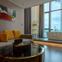 Отель находится прямо над районом Цзефанбэй, поэтому добираться очень удобно. Такси может подъехать прямо к входу. В номере есть все необходимое, мне очень понравилось проживание. Хотя отель расположен в оживленном районе, он занимает верхние этажи, поэтому здесь довольно тихо. Напротив находится торговый центр Raffles City, а внизу — станция метро, что очень удобно. Обязательно приеду снова!