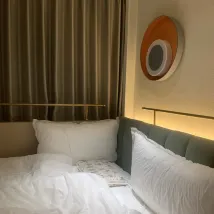Мы взяли моих родителей в поездку и забронировали номер на два дня. Комната с двуспальной кроватью, в которой остановились мои родители, была немного меньше. Было неудобно подниматься и спускаться по лестнице и ждать лифта. Хотя было 4 лифта, они тоже были. много туристов Мне приходилось больше всего времени ждать лифта каждый день. Это очень близко к Монументу Освобождения. Вы можете увидеть Монумент Освобождения прямо из комнаты, а также удобный транспорт. Вы также можете взять такси от метро.