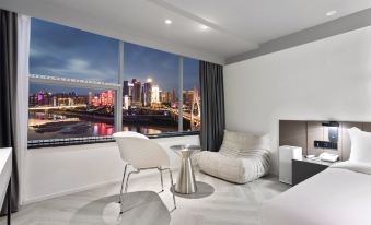 Joyful Yuman Sky-Rise River-View Family Twin Room (Enchanting City Light Shadow View + Light Luxury Bathroom + Smart Toilet)