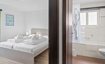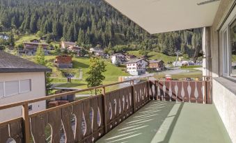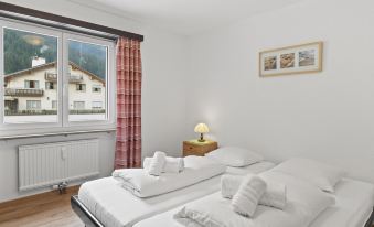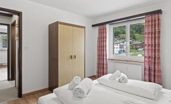 2nd floor / Elevator / Wi-Fi yes / 2 rooms with double beds / 1 room with two single beds / 1 bathroom with WC and shower / 1 bathroom with WC and bathtub The Coop and Migros grocery stores, as well as the sports shop and the cable cars, are in the immediate vicinity. In summer, the heated outdoor pool is just a few steps from the house. (In the same building as the Lang holiday apartment)