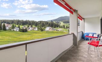 Triangle House B / 3rd floor-attic / Lift / no wifi / 1 room with double bed and one single bed / 1 room with double bed (sloping roof/mansard) / 1 bathroom with WC, shower and bathtub / 1 separate WC The Heimberg chairlift, the Kinderland and the cross-country ski trails are in the immediate vicinity of the flat.