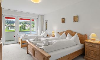 70 m2. More information by the provider: Beautiful, spacious 3.5 - room attic flat in the middle of Parpan. The flat has a very spacious living area, as well as a three-bed room and a two-bed room, both with direct access to the covered south-facing balcony. Welcome to the Rezia Holiday Apartment, conveniently located near the Heimberg chairlift! This prime location provides you with direct access to the eastern side of the Lenzerheide ski area, allowing for comfortable ski-in and ski-out. From here, you also have access to the spectacular Lenzerheide-Arosa connecting cableway, which takes you to the Arosa ski area. Additionally, within just a few minutes' walk, you can reach the Proschieri valley station, connecting you to the western side of the Lenzerheide ski area. In winter, you will benefit from direct access to the cross-country ski trail, located just a few meters from the apartment. The nearby Kinderland Heimberg offers ideal conditions for your children to learn skiing in a playful way at the Parpan Ski School. Furthermore, a beautiful and cozy toboggan run in the vicinity provides fun for both young and old. In summer, this location becomes a paradise for outdoor activities. Numerous cycling tours and hiking trails start right at your doorstep. In just 10 minutes, you can reach the idyllic Heidsee by bike (only 4 minutes by car), where you can enjoy stand-up paddling, swimming, surfing, sailing, pedal boats, rowing boats and kayaking.