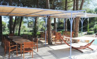 Adjacent to the garden, terrace with pergola is equipped with several garden furniture, a barbecue and a hammock. Hidden from prying eyes, you can relax on the sun loungers by the pool, play table tennis, bocce and enjoy the swing. In addition to a large summer kitchen, the property has all comfort: