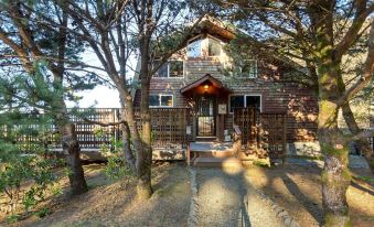 Cove Beach Cottage is perched on a hill, with a beautiful view of the ocean. It overlooks Cove Beach, just a 3-minute walk away. Located between Cannon Beach and Manzanita, the cottage is surrounded by the old-growth forests of Oswald West State Park. Parts of the Oregon Islands National Wildlife Sanctuary are visible from the living room. Enjoy a BBQ or the sound of the ocean from the deck. Or watch shooting stars at night from the new 2023 Marquis 3-person hot tub located on the deck.
