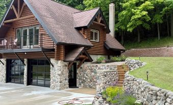 Escape to Northern Michigan with views of Lake Skegemog, a close drive to Torch Lake! Log and stone charming cabin centrally located with all around stunning views. Open floor plan with a spacious living room, fully stocked kitchen, dining room, newly constructed theme room and two full bathrooms, sleeps 7. Two cozy bedrooms and two sofa couches available.