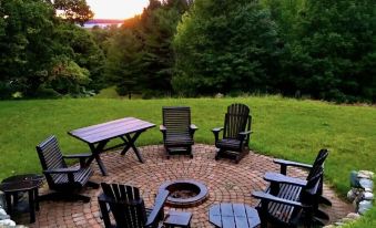 A beautiful fire pit with stunning lake views is perfect for roasting marshmallows and stargazing.