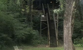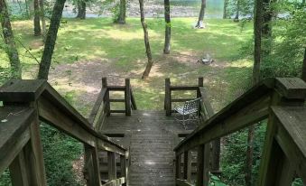 Steps and platforms meander down from the cabin's woodsy back deck to the banks of the river. There is a large cleared area between the deck and river. It’s perfect for driving down the access road to fish right from your tailgate, with a small campfire ring, and open room to play for little ones. The world record German Brown Trout was caught within a half mile of the cabin at cow shoals at over 40 pounds and boat rental and fishing guide service are available right down the lane. Excellent fly fishing opportunities abound. With boating lane at our bank, and a rocky shoal leading all the way across to the river’s opposite shore, you have prime conditions for dam release levels or low water wading. Make certain to view pictures of lunker trout caught by 2011 guests within one-mile of the cabin, at Cow Shoals.