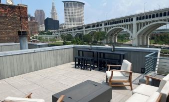 The main level boasts an open floor plan that is perfect for entertaining, a chefs kitchen with stainless appliances and a great room with expansive windows framing downtown and bridge views. A dining area, cozy breakfast nook, large great room and half bath complete this level. The third level is the owners suite with floor to ceiling windows and attached luxury bathroom. A second bedroom with attached full bath. Laundry room, reading area under stairs with 2 twin pull-out sleeping chairs finish this level. The fourth level has a pull out sofa bed. It is ideal for relaxing and provides access to rooftop deck with unparalleled views of downtown skyline, Cuyahoga River and Superior Viaduct. There is a two car attached garage and gated driveway. We are the best location near Windows on the river, a popular wedding location. About pets:No pets allowed.About checkOut:Check out before 11:00 AM.About children:Children allowed: ages 0-17.About customRules:There is no access to backyard or parking in the driveway. There are two spaces in the garage. Quiet hours from 11pm to 9am..There are a lot of stairs to be climbed. This may be a challenge for children and people with physical challenges.,There is a guest limit. We can not have more people at the home than the reservation is for..About checkIn:Check in after 4:00 PM.About smoking:Smoking is not permitted.About minBookingAge:Minimum age to rent: 22.About events:No events allowed.