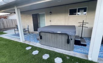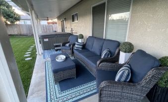Newly remodeled Non- smoking, No animals, 4 Bedroom Home w/ 2 King Beds, 1 Full Bed & 3 Twins in bunk room, 3 full bathrooms, 2 TV's, dishwasher, garbage disposal, gas stove and nice big refrigerator, with a nice sized kitchen. BBQ for the family while enjoying the hot tub and corn hole, axe throwing & janga game. Nice park for kids to play across the street. An electric car charger in garage. We're centrally located in the heart of The Central Valley it's close to downtown Clovis with many restaurants and attractions, a shopping mall, movie theater's and indoor K1 kart racing, laser tag, classic billiards and Friday night Farmers Market in the summer. We're also not far from Yosemite National Park and Sequoia National Park, Clovis is home of the Clovis Rodeo. Clovis has many attractions from the Balloon festival, Big Hat Days put on by the Clovis Chamber of Commerce. We're right down the street from Wild Water Adventures water park. Golfing at our local golf courses is always fun along with wine tasting. Come enjoy what our area has to offer. About pets:No pets allowed.About checkOut:Check out before 11:00 AM.About children:Children allowed: ages 0-17.High chair is available. Portable crib if needed..About customRules:Do not leave outdoor games outside in bad weather, please bring them into the garage. Only use the axe throwing game outside and not in garage..About checkIn:Check in after 4:00 PM.About smoking:Smoking is not permitted.About minBookingAge:Minimum age to rent: 21.About events:No events allowed.