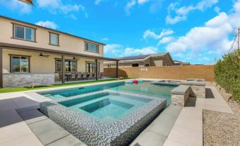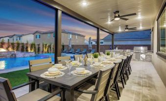 This home has been tasteful setup with great amenities and finishes inside and out. From the new pool/spa with water features and sunken firepit. Outdoor you have a large covered dining area with room for 14 people and and custom built-in BBQ. Indoor the decor has a relaxing feel ... great for your vacation. The amazing high end kitchen, game room and spacious layout a perfect for your family and/or friends.