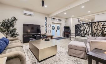 Modern Amenities: Gourmet kitchen with stainless steel appliances and a coffee bar, fast WiFi, Roku TVs, arcade games, and inviting work-from-home spaces.